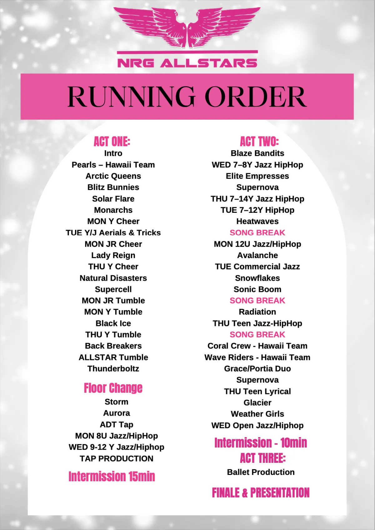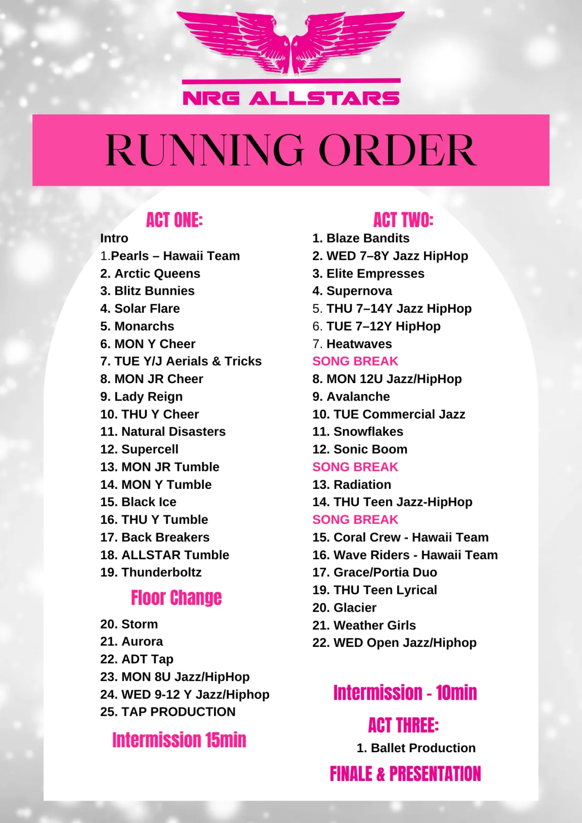 PRIMARY + CONCERT RUN ORDER
